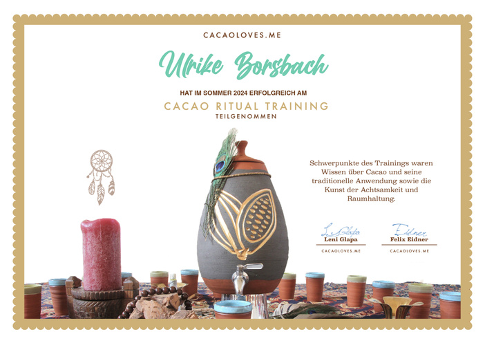 Lerne mich und die Kraft des Kakaos in einer meiner kommenden Online-Zeremonien kennen. Ich freue mich darauf, Dich auf Deinem Weg zu mehr Gelassenheit und Lebensfreude begleiten zu dürfen.